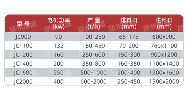 JC颚式破碎机参数表