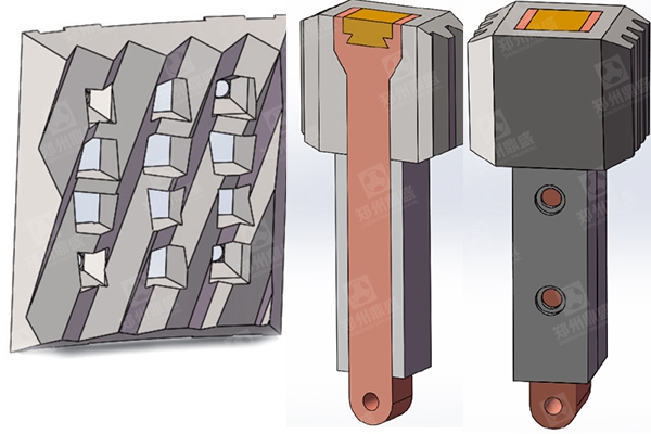楔形耐磨合金套装锤头;上部外层采用楔形带齿设计,中间采用硬质合金机械连接“核芯”;下部采用耐磨套,提升整体耐磨性能。