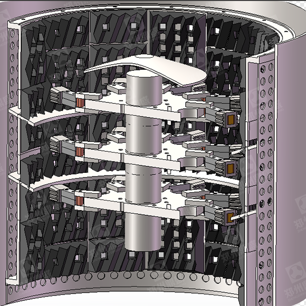 齿形带斜槽及方孔衬板;可提升破碎、整形效率;小颗粒及时排出打击区,避免过粉碎从而实现低制粉。
