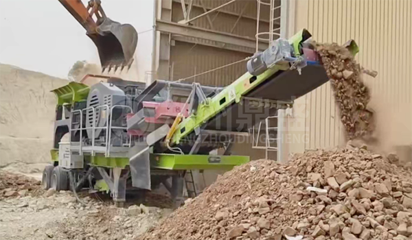 郑州古天乐太阳集团城入口移动颚破站破碎粘土现场