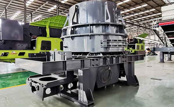 石灰石由机器上部垂直落入高速旋转的叶轮内,在高速离心力的作用下,与另一部分以伞状形式分流在叶轮四周的物料产生高速撞击与粉碎,物料在互相撞击后,又会在叶轮和机壳之间以物料形成涡流多次的相互撞击、摩擦而粉碎,从下部直接排出,形成闭路多次循环,由筛分设备控制达到所要求的成品粒度。