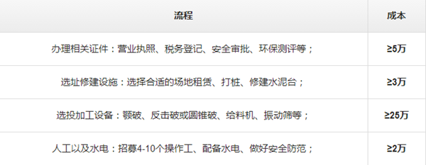以上是从市场统计数据分析得来的开办石料厂流程与需要的成本,总计约需要35万以上的投资成本,不同的规模、产量需求决定了不同的成本,如果您想获取更详细的专属石子加工厂每吨成本、方案分析,可点击在线咨询 ,由厂家专业人员在线为您解答。