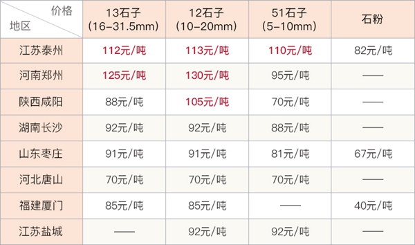 通过下面的表格可以看出大部分地区13、12、05石子的价格都在每吨80元左右,陕西西安的甚至都超百元了!侧面也体现了砂石需求量有多高,便于计算我们就按照每吨80元好了;然后是石子加工厂每吨成本—原料、人工、水电以及其他总约为40元,则加工一吨石子的利润为40元每吨(含税费)!