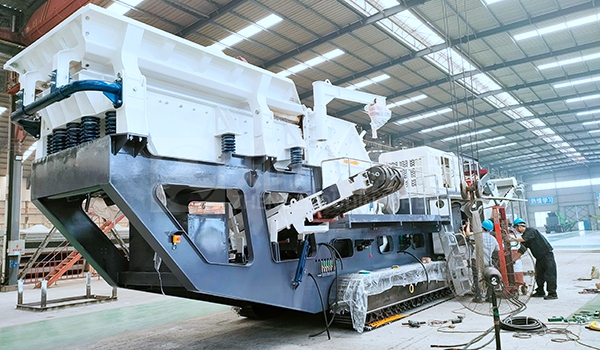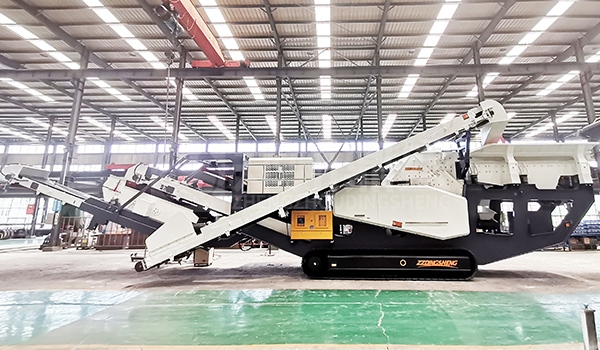 移动破碎机工作原理:大块物料经过给料机均匀输送到移动破碎站设备内,由颚式破碎机初次加工,物料再经输送机送入反击式破碎机进行二次处理,破碎出的物料经振动筛进行筛分,满足破碎要求的物料由输送机输出,不满足要求的物料再次进入反击式破碎机破碎,通过圆振动筛构成闭路系统,实现物料的循环破碎,成品物料由输送机输出,进行连续破碎作业。
