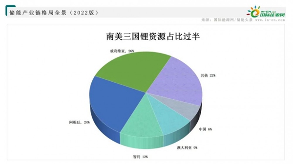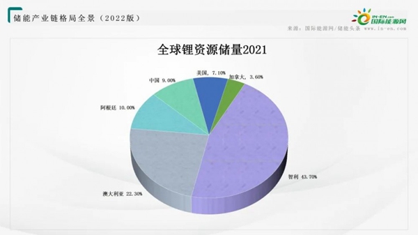 2021年较新数据显示,当前世界已探明的锂矿资源中,智利、澳大利亚、阿根廷、中国、美国5个国家储量占比达到85.73%。