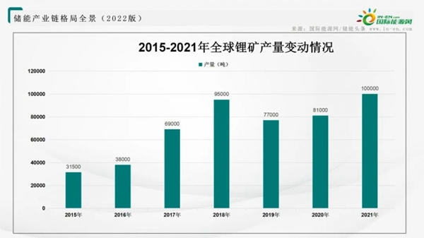 从供应量上看,2021年全球锂矿石产量约为10万吨(不包括美国),较2020年的8.25万吨增长21%。2021年全球锂资源消费量估计为9.3万吨,较2020年的7万吨增长33%。