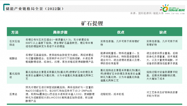 通过技术创新和改造,进一步降低成本是矿石提锂技术的发展趋势。与石灰石焙烧法相比,硫酸法、氯化焙烧法以及压煮法能耗低、锂的浸出率高,具有取代石灰石法的趋势。