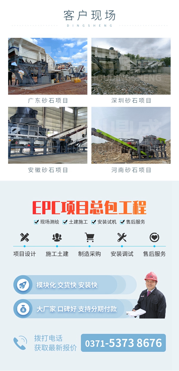 与传统固定式生产线的安装方式相比,撬装式模块化设备减少占地,减少土建成本,现场安装工作量少、安装周期短,可快速投产,具有性价比高、模块化设计、无需土建、配置灵活等显著优势,广泛应用于花岗岩、河卵石、石灰石等各种矿石破碎,建筑垃圾再生利用,铁路,高速公路,能源,水泥,化工,建筑等行业。