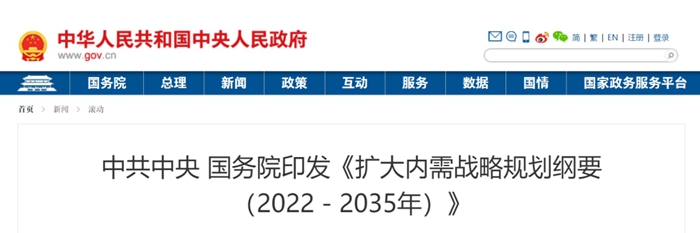《纲要》指出,坚定实施扩大内需战略、培育完整内需体系,是加快构建以国内大循环为主体、国内国际双循环相互促进的新发展格局的必然选择,是促进我国长远发展和长治久安的战略决策。