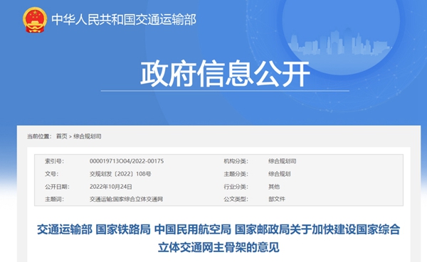 为贯彻党中央、国务院关于全面加强基础设施建设、构建现代化基础设施体系的战略部署,全面落实《交通强国建设纲要》《国家综合立体交通网规划纲要》,加快建设国家综合立体交通网主骨架,提出以下意见。